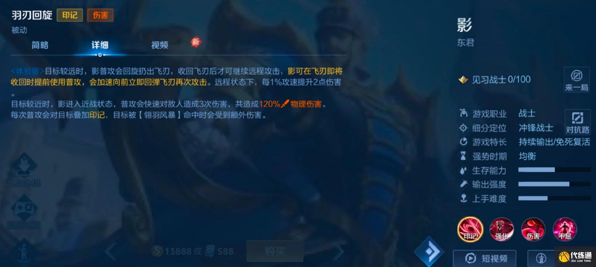 王者荣耀在8月29日体验服更新之后将上线新英雄影,这是王者荣耀新的战士英雄,定位对抗/战士,那么大家知道王者荣耀影技能是什么呢?下面一起来看看吧。