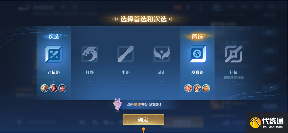 对于可玩更多分路的玩家,新增补位功能,可选择补位进行匹配,系统也将优先考虑玩家使用分路习惯进行位置匹配。