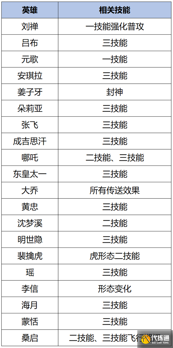 本次改动涉及以下技能: