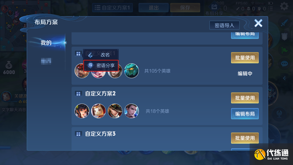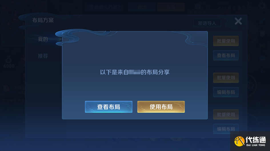 复制密语后打开局外布局设置界面,即可弹出分享的布局方案,可一键查看使用分享的布局方案。