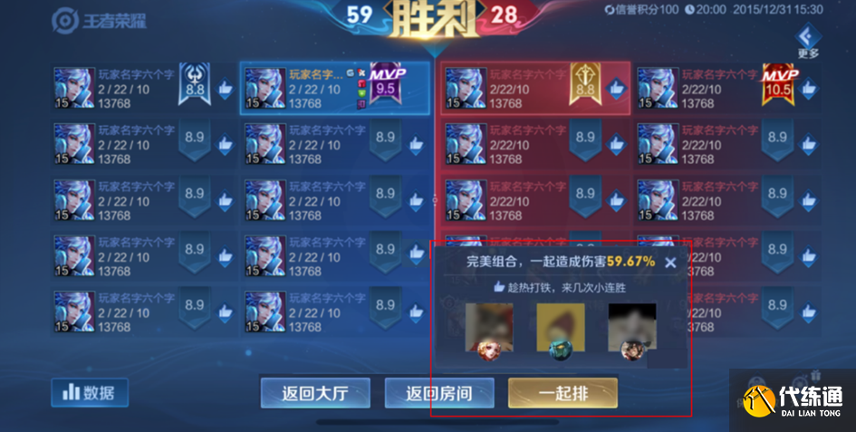 10v10众星峡谷排位对局结束后,可以点击“一起排”按钮,与默契的路人队友一起组队,最多支持邀请四位队友。