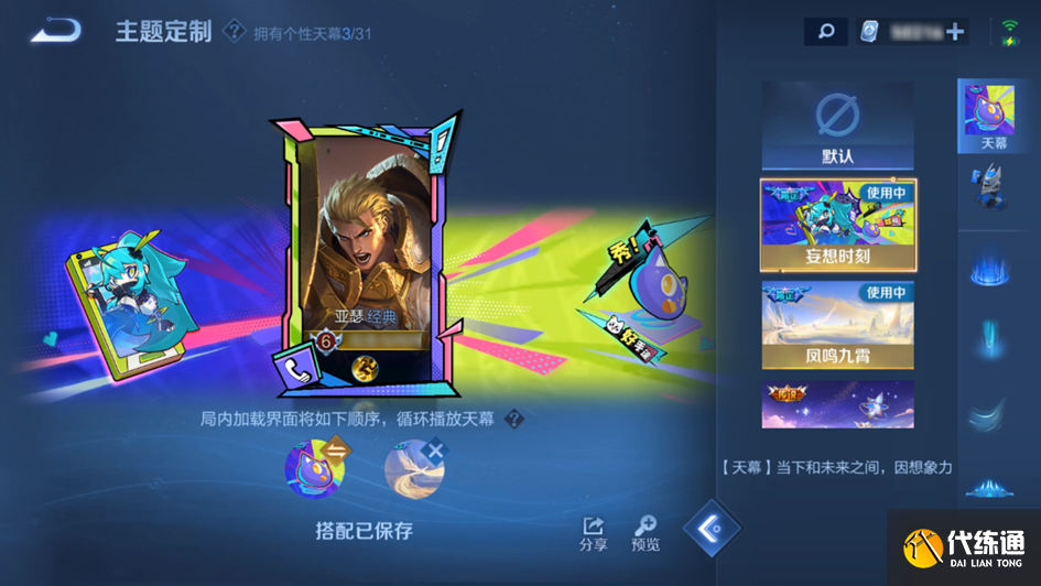 过去在对局加载阶段,每个玩家只可最多播放1个天幕。双天幕功能支持所有皮肤穿戴2个天幕,并且在对局加载阶段,每个玩家都可以选择播放该皮肤已经穿戴的最多2个天幕。