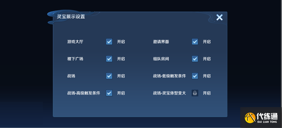 根据解锁进度,玩家可在大厅、组队房间、邀请界面、稷下学院、战场等场景选择是否展示你的灵宝。