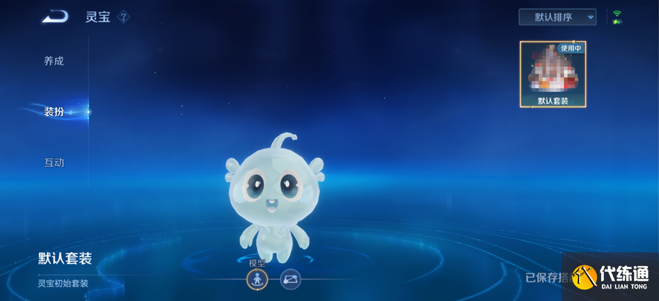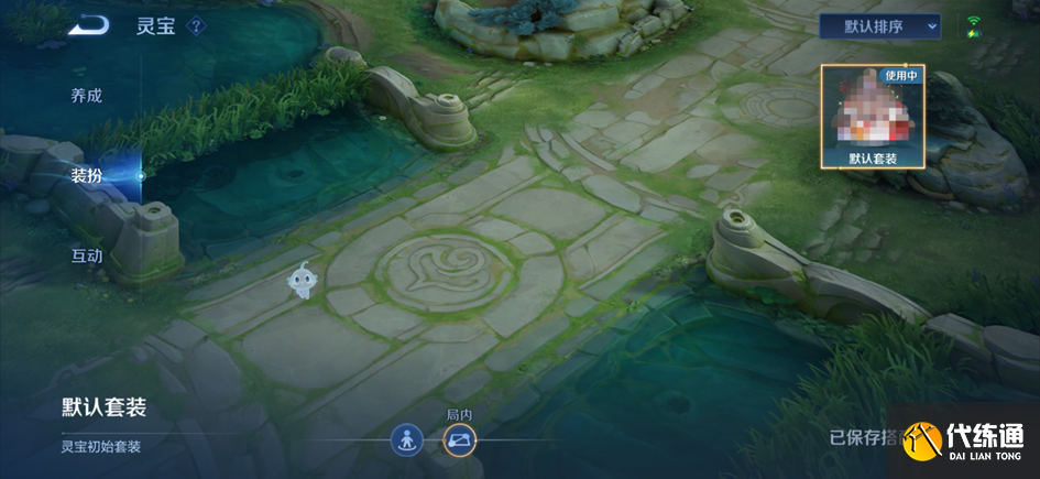 在装扮界面,可为灵宝穿戴不同的套装,当前仅支持成套穿着。