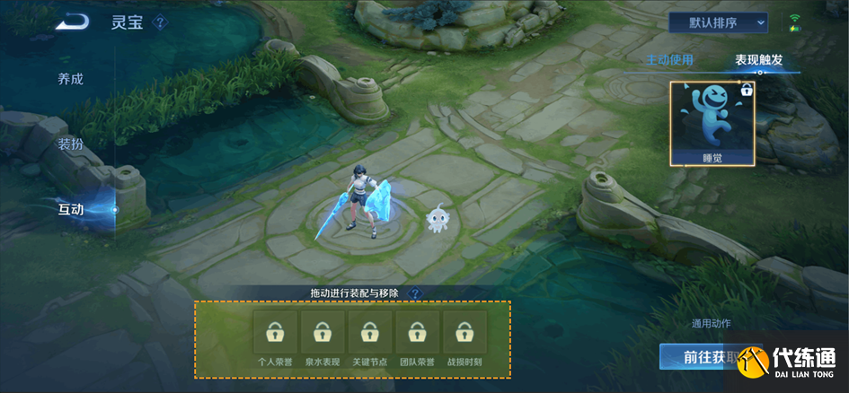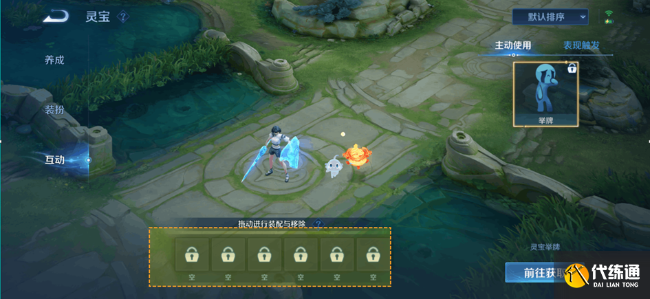主动使用:配置动作后可在局内手动召唤灵宝与玩家互动。