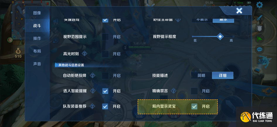可在局内-战斗界面设置局内灵宝的展示,关闭后将不显示局内所有玩家的灵宝,此设置只影响自己,不影响他人表现。