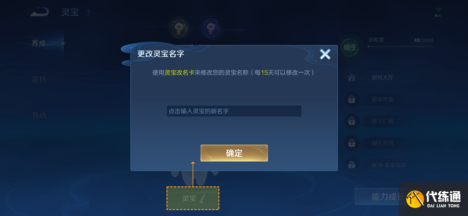 每天登录与灵宝进行的初次互动可增加少量亲昵度。