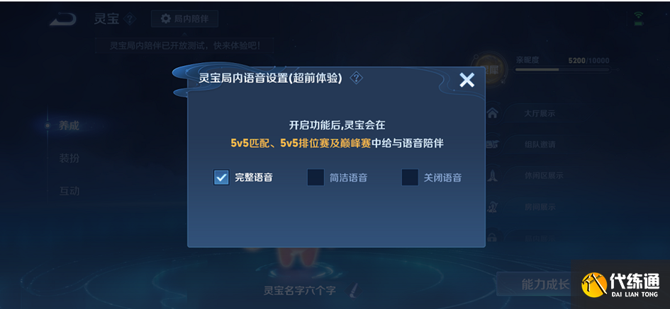 可在灵宝养成界面设置灵宝语音模式。