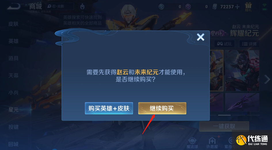 更新后,玩家购买星元可以跳过英雄和皮肤的限制,选择继续购买。
