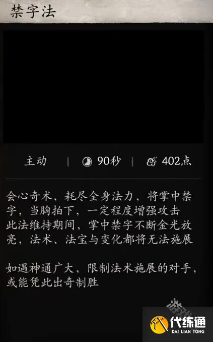 4.禁字法在使用过程中不能变身、使用法宝、使用法力值。