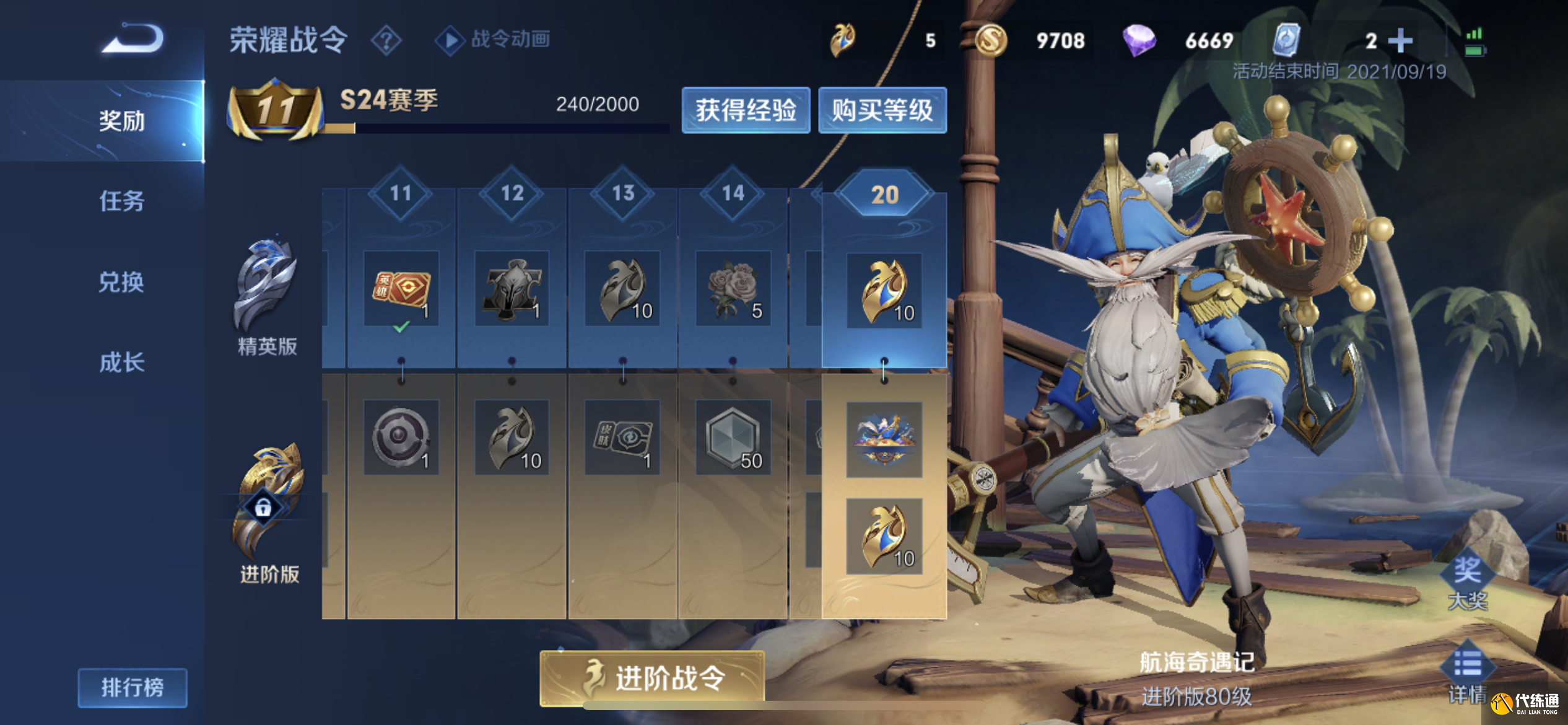 当然如果想最快获取战令奖励的话,点击进阶战令会显示进阶卡和典藏进阶卡,选择不同的卡片类型达到的经验和物品也会不同,选择进阶卡只能解锁几个英雄的皮肤和碎片,但如果选择典藏进阶卡的话,进阶卡里的奖品也会有,而且能额外获得了战令等级增加30级、专属头像框和专属的荣耀播报奖励,想一想选择典藏进阶卡以后排位的话呈现的画面也是很带派的,当然有部分玩家舍不得升级这两样,那就只能一点点打上去啦。