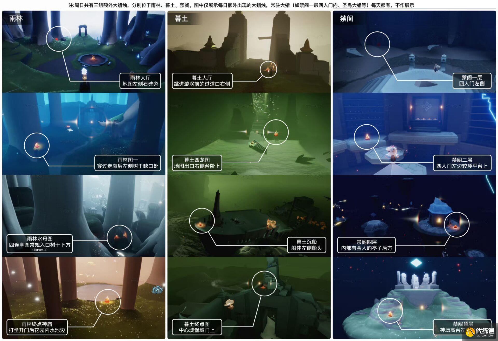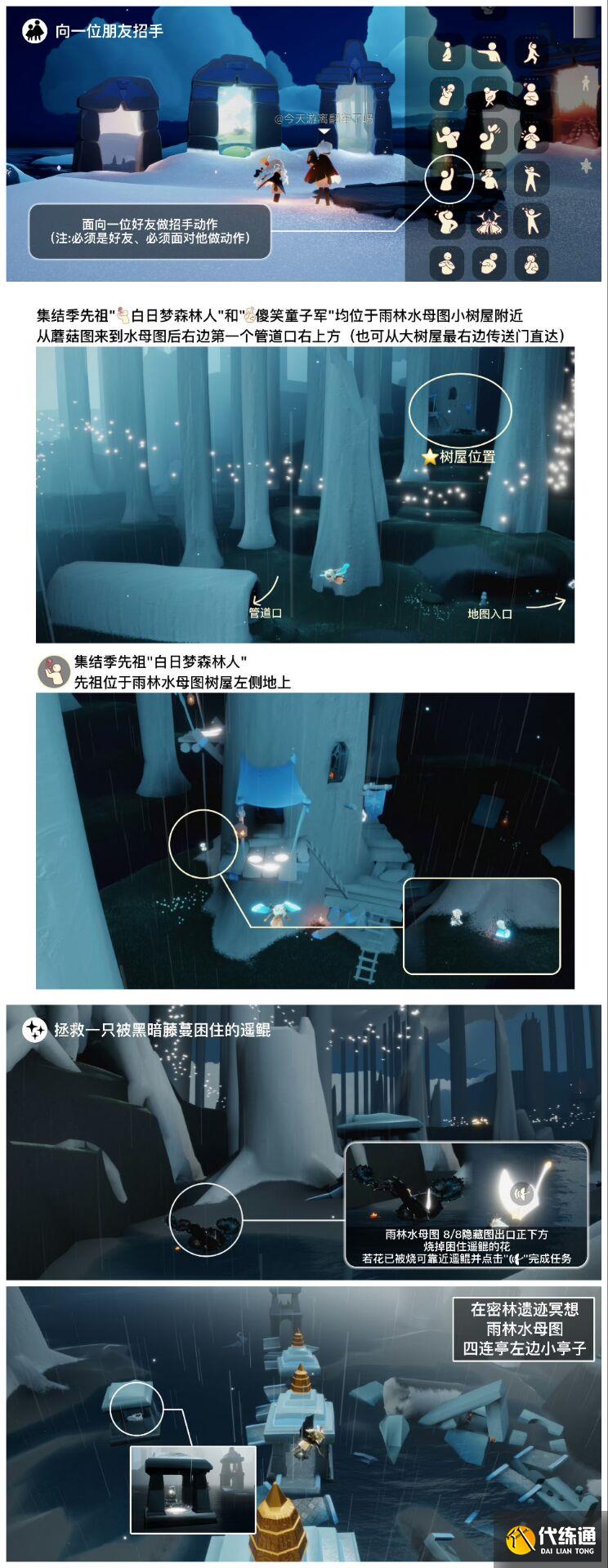 《光遇》游戏中每天的每日任务及大蜡烛的位置都不相同,玩家完成每日任务及收集大蜡烛都可以得到丰厚的兑换奖励,奖励可以用于兑换各种动作及道具,不过很多小伙伴不知道每日任务怎么做,又懒得自己去找大蜡烛的位置,我们汇总了每日任务的完成攻略以及蜡烛位置,一起来看看吧!