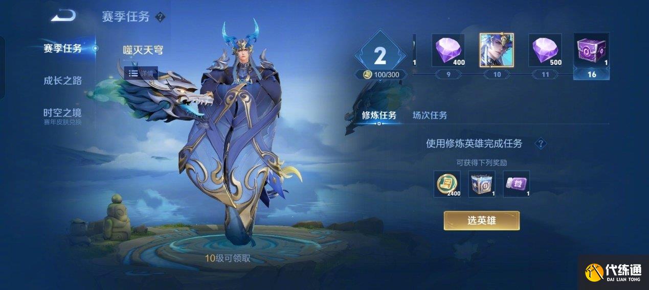 9月25日新版本更新后,完成赛季任务即可获得:东皇太一-噬灭天穹!