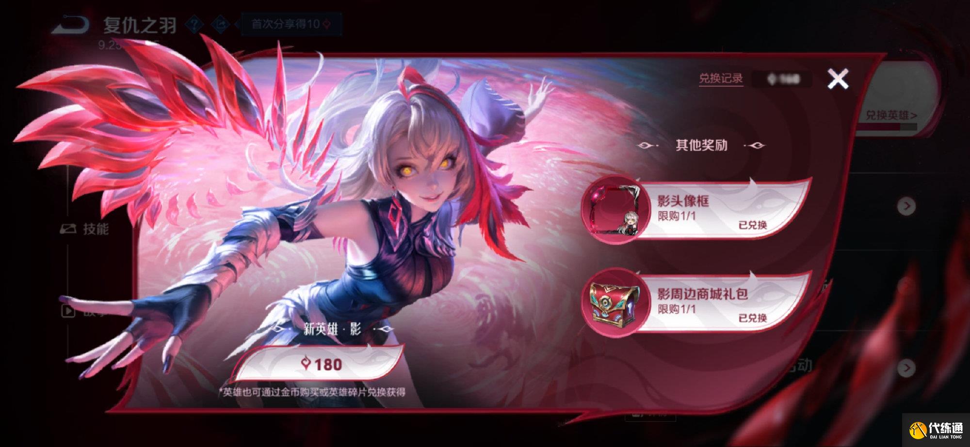 活动奖励:新英雄-影、影头像框、影-周边商城礼包