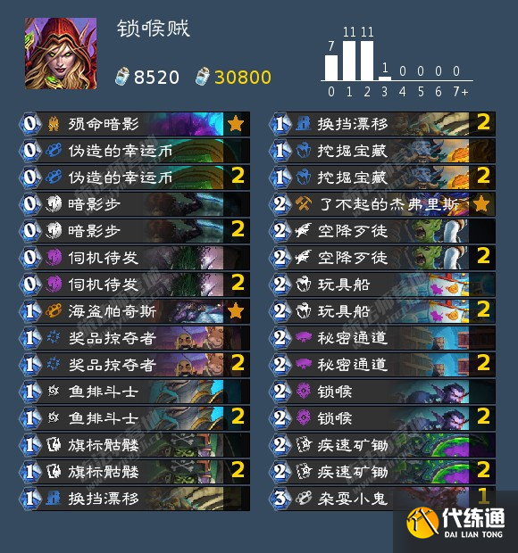 秘密通道被削为2费后,只有原本满编伺机待发的盗贼卡组受到的影响相对小一点,锁喉就在此列。