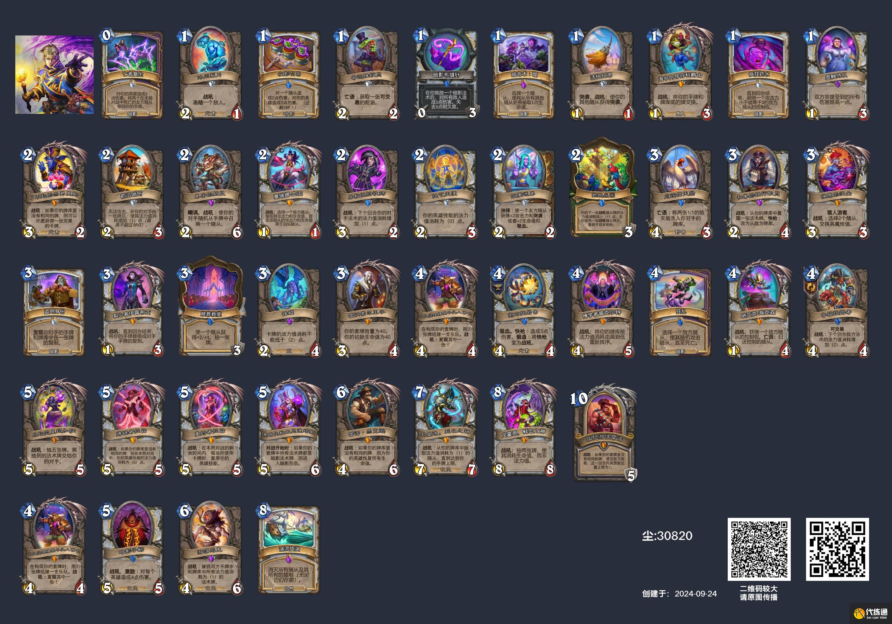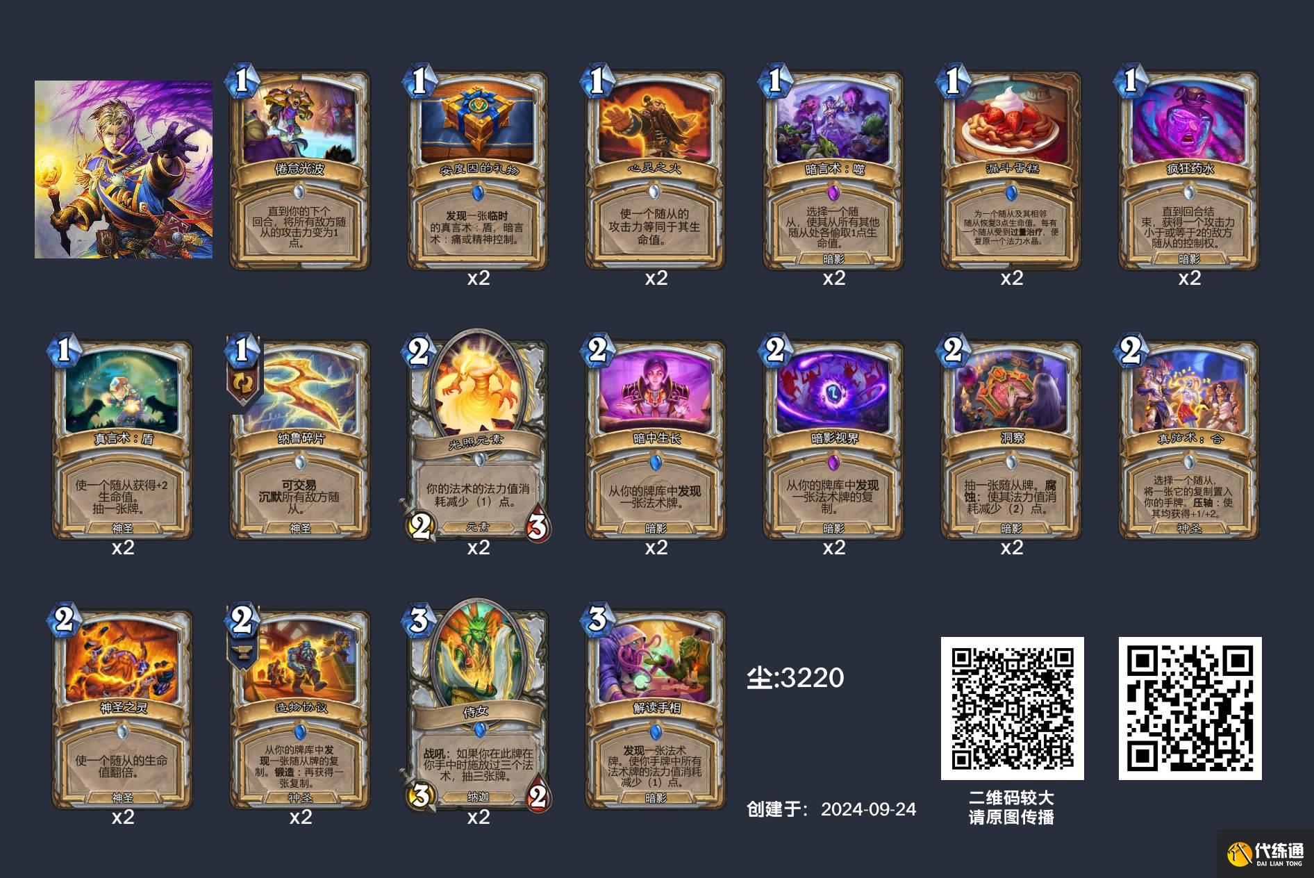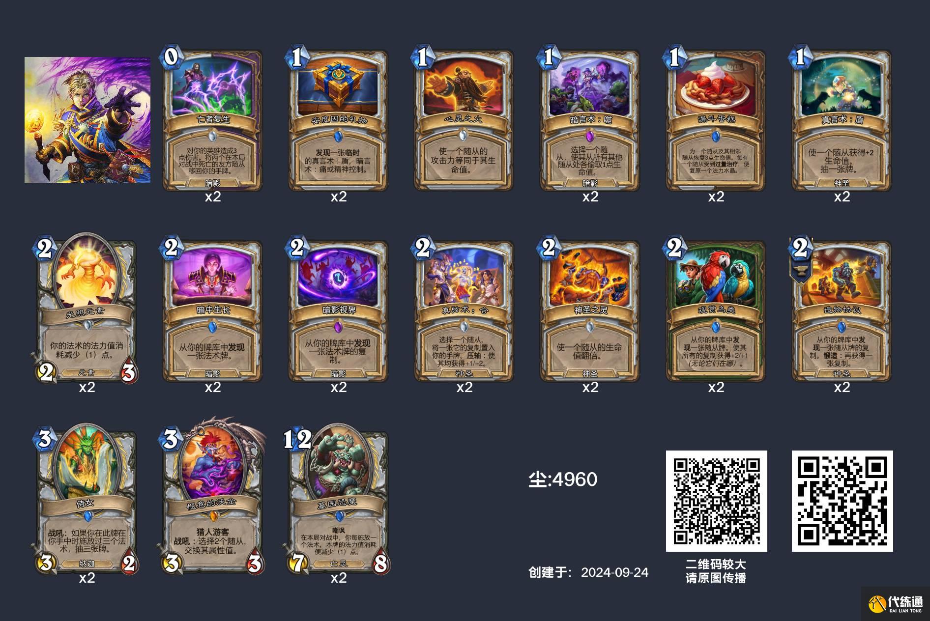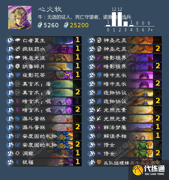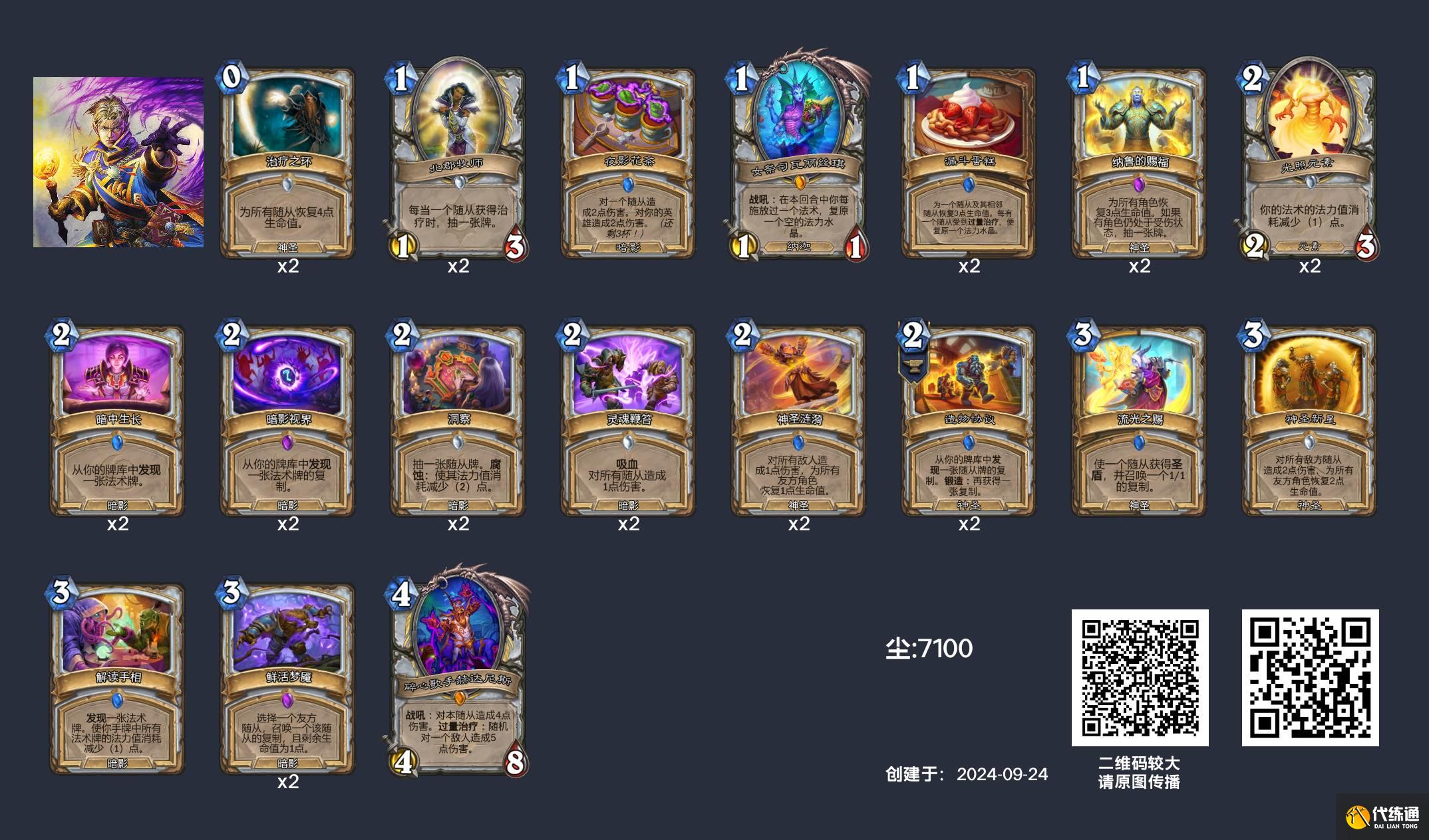 如果你想尝试携带光照元素的牧师,我推荐你从这套带墓园恐魔的卡组入手,强度有保障,熟练之后轻松上传说,卡组也有登顶潜质。
