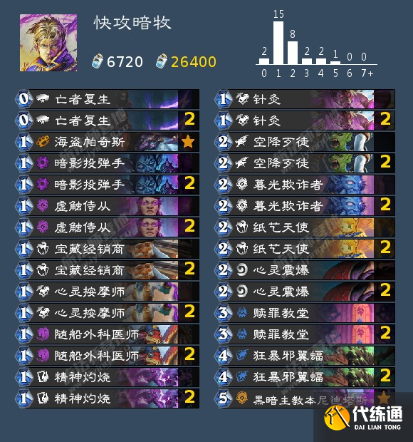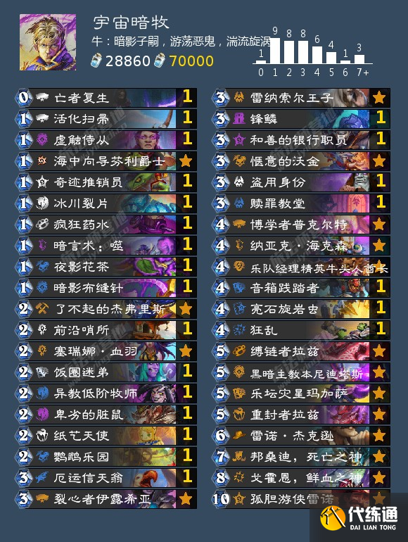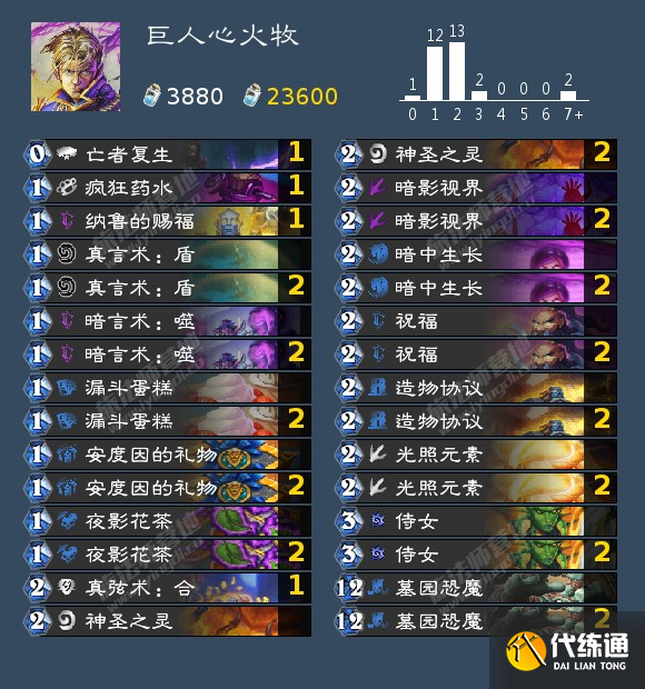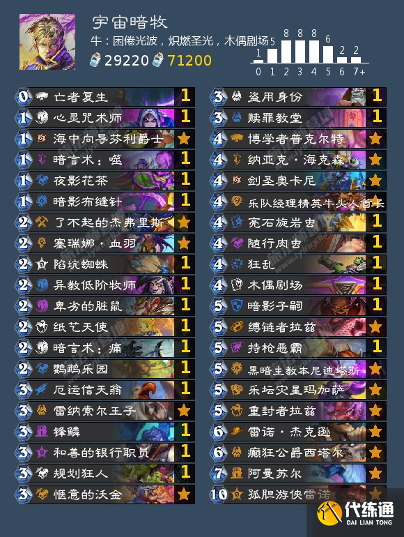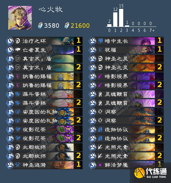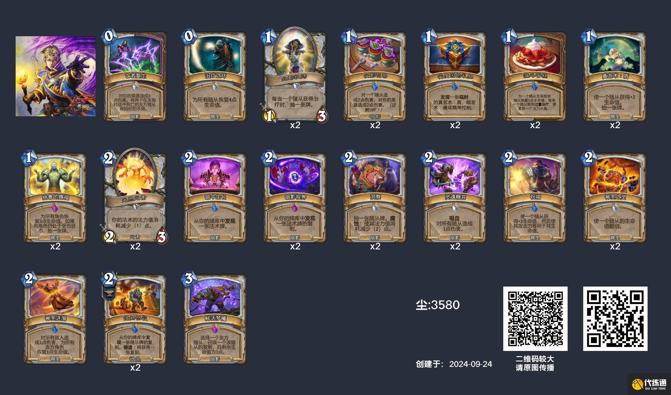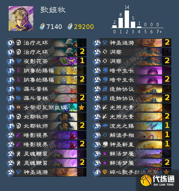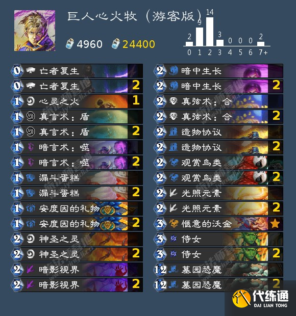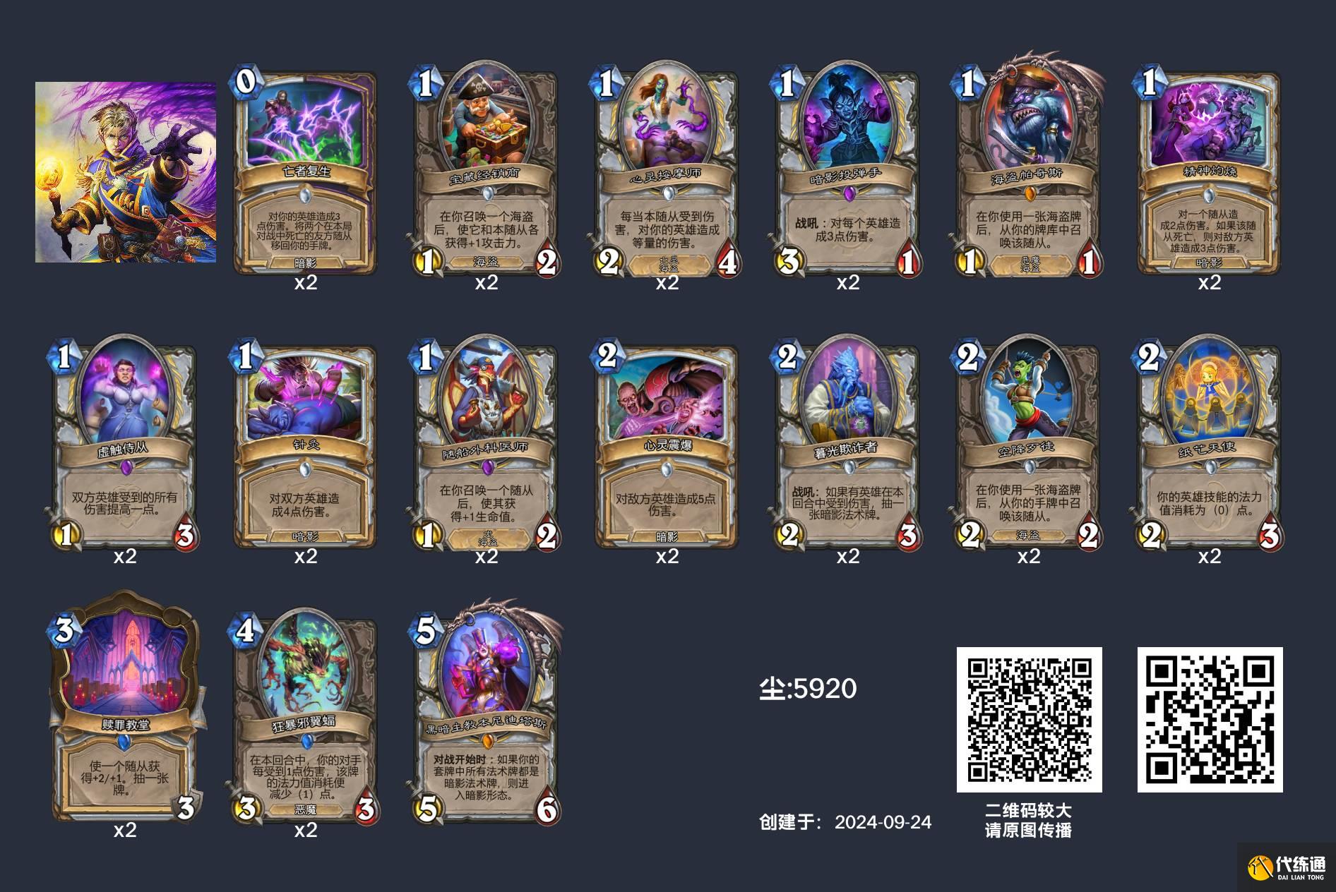 如果你想尝试携带光照元素的牧师,我推荐你从这套带墓园恐魔的卡组入手,强度有保障,熟练之后轻松上传说,卡组也有登顶潜质。