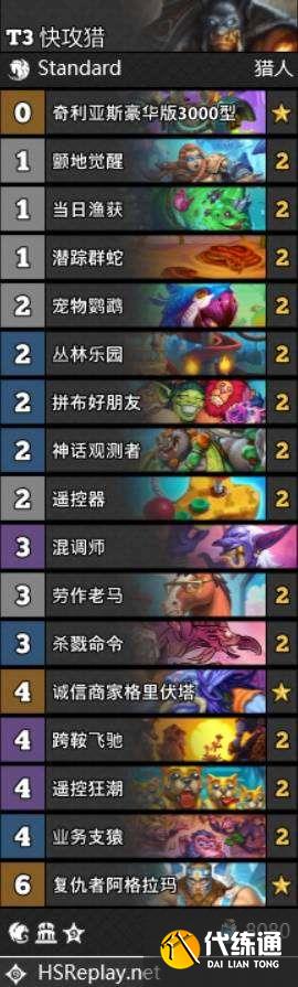琪哥在法师肆虐时候搞了一个铺场猎,但是随着环境变化,越来越多偏中速或者带aoe的卡组重新加入战场,快攻猎的环境变差了。