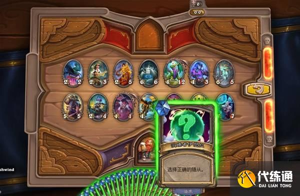 而这个谜题算是比较简单的,就是连连看,你手里有20张神秘法术,法术名字标有一个随从的名字,而场上有14个随从,你只需要把带有正确的名字的法术拖到正确的随从身上就行了,这个对于老玩家来说没什么难度,而且好像是没有时间限制的,只记得绰号不熟悉卡牌名的也可以简单百度一下,基本上都可以一次过。