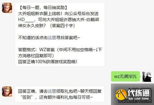 题目:大乔姐姐新衣服上线啦!向公众号后台发送HD_____,可向大乔姐姐许愿抽大乔-白鹤 ?