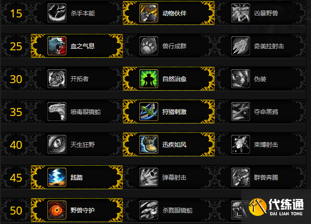 杀手本能:生命值低于 35% 的敌人将受到你的杀戮命令 50% 以上的伤害。如果您不想使用[动物伙伴],这是您的首选天赋,但使用它会造成少量 DPS 损失。