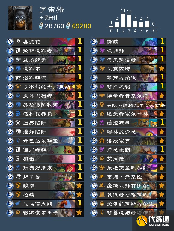 来自王噗鲁什的宇宙猎,他使用这套卡组在月初打到传说第二名, 并且之后稳定在传说前20