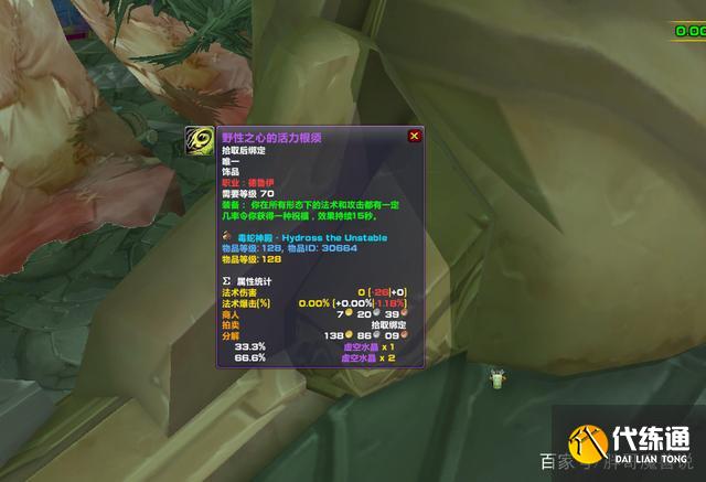 德鲁伊的饰品名为野性之心的活力根须,掉落于毒蛇神殿1号BOSS海度斯,相比其他职业来说,小德的饰品可以说是最全面的,原因就是这件饰品在不同的形态下都有不同的收益。