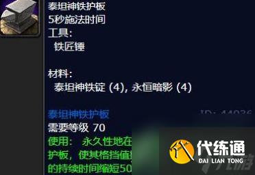 2、制作泰坦神铁护板,使用在盾牌上增高增加格挡值,可交易物品。