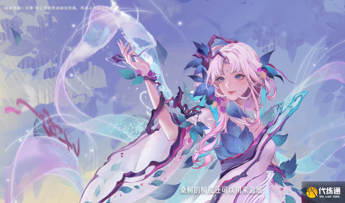 当桑叶与蚕丝汇聚,如破晓的阳光迸发出光芒,照亮桑田。丝线织成锦缎缠绕在艾琳手上,也织就出琉璃般闪耀的锦绣天地。