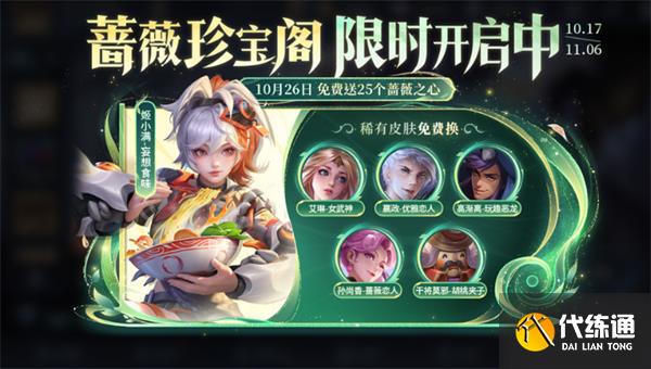 福利三:蔷薇珍宝阁开启,10月26日登录即领25个蔷薇之心。