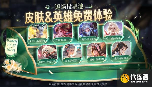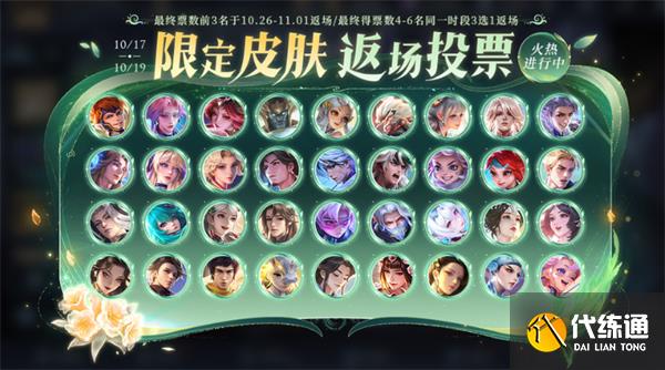 福利四:返场投票开启,投票池英雄及限定皮肤限免。