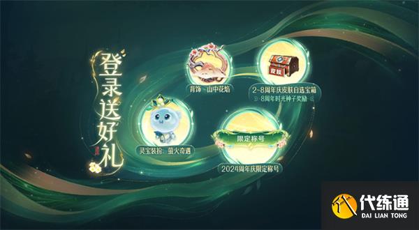 福利六:灵宝心意到,10月26日登录即领灵宝周年庆全新装扮,周年庆限定称号,元流之子背饰好礼;时光种子收获,2~8周年庆皮肤任选一个!