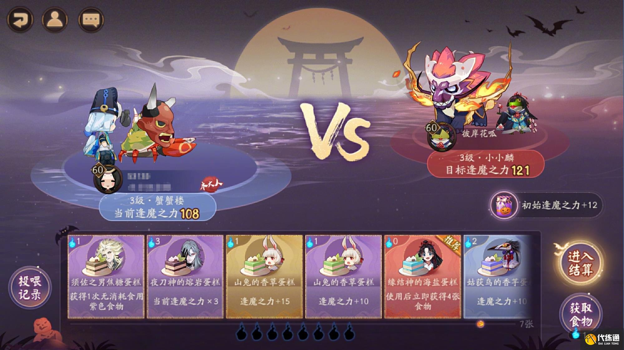 ※阴阳师大人可以携带逢魔怪物参与讨糖作战啦!敲门挑战其他阴阳师大人,合理选择糖罐增益、调配食物资源,当逢魔之力大于或等于对手即可成功讨糖!