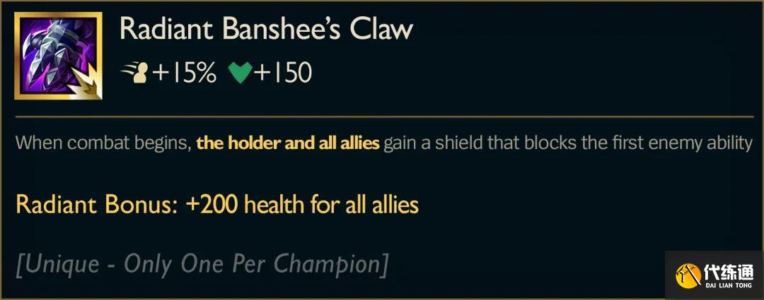 光明 女妖之爪,可以为全队提供一次技能格挡。
