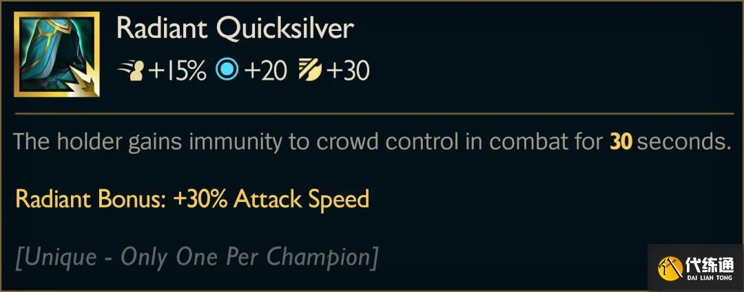 光明 水银可以给携带者提供30秒的免疫控制效果,同时还会为增加30%攻击速度!