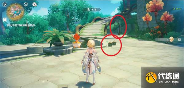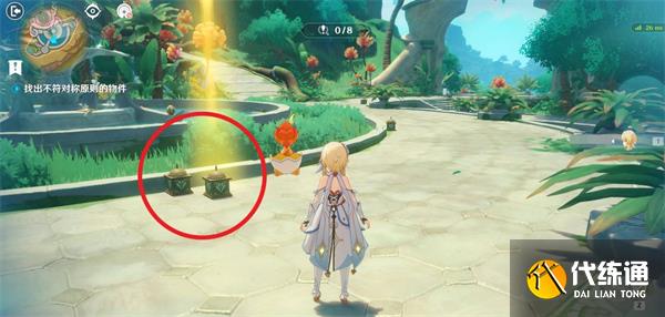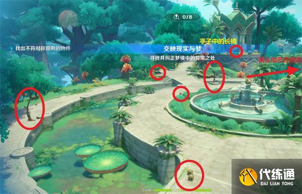 通关目标为在梦境中纠正所有异常之处,找到场地中不中心对称的灯饰、长椅和路灯,一共拥有八个,分别点击点击就可以完成任务。