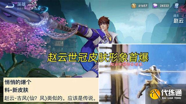 王者荣耀每一届的世冠赛都会出一款皮肤来纪念,目前已经出了两款世冠皮肤了,分别是虞姬和李信的,而今年7月份即将迎来第三款,目前呼声最大的英雄当属赵云,虽然在去年和今年上半年,一直有百里守约喜提世冠的消息,不过由于官方想把世冠做成一个系列,所以百里守约就落选了,且目前的爆料信息来看,赵云有皮肤格子,而且还有古风皮肤爆料,很大可能就是赵云新皮肤了,看来作为天美的亲儿子,赵云目前还没有一款传说级别皮肤,实在过意不去,目前网上爆料的赵云世冠皮肤有一个大概的概念图,如下图所示: