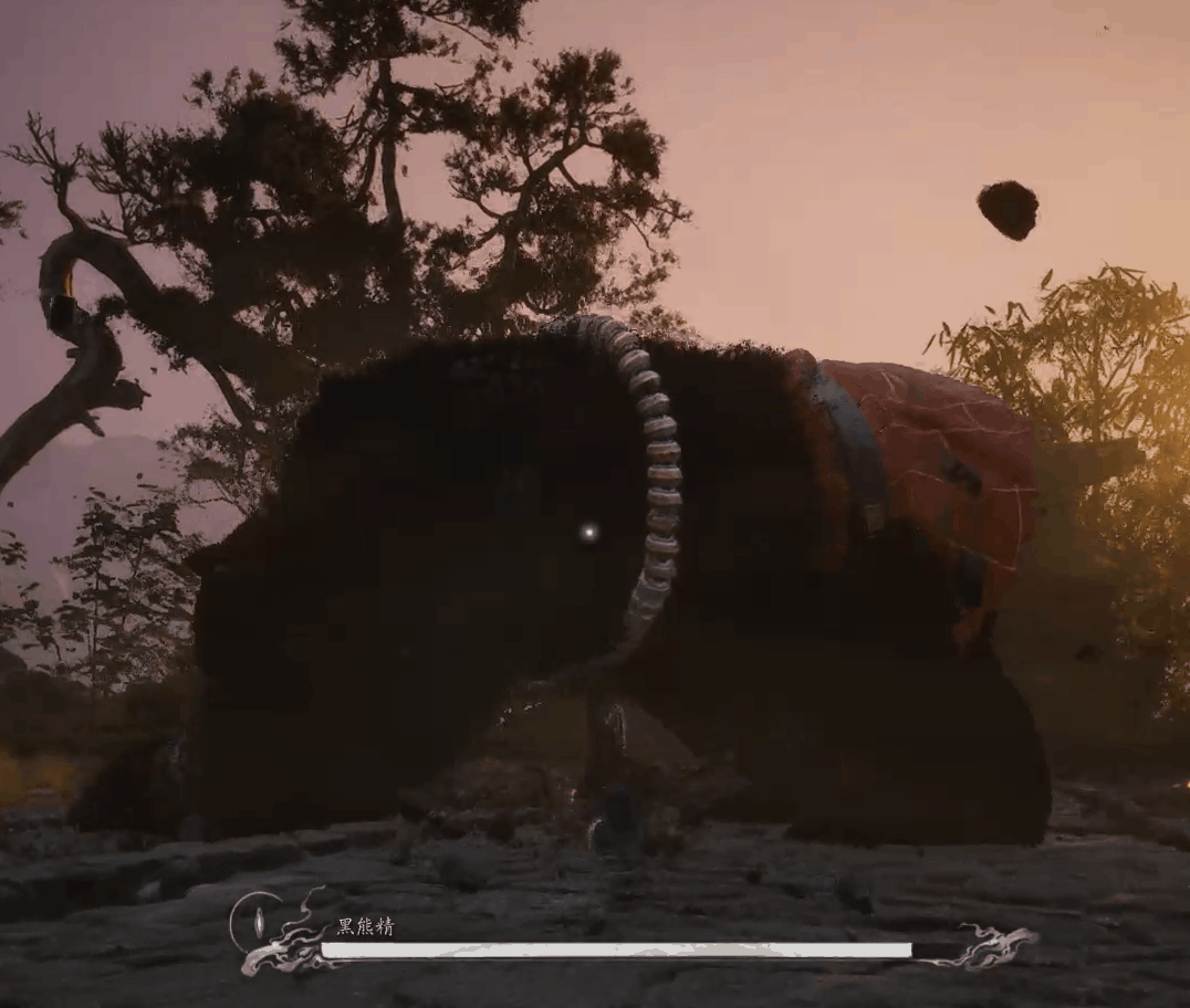 黑熊精类似于黑风大王的“变风”技能,快速消失再重新出现。当黑熊精变成风并爆炸时,立即观察爆炸的时机,并翻滚避开攻击范围。
