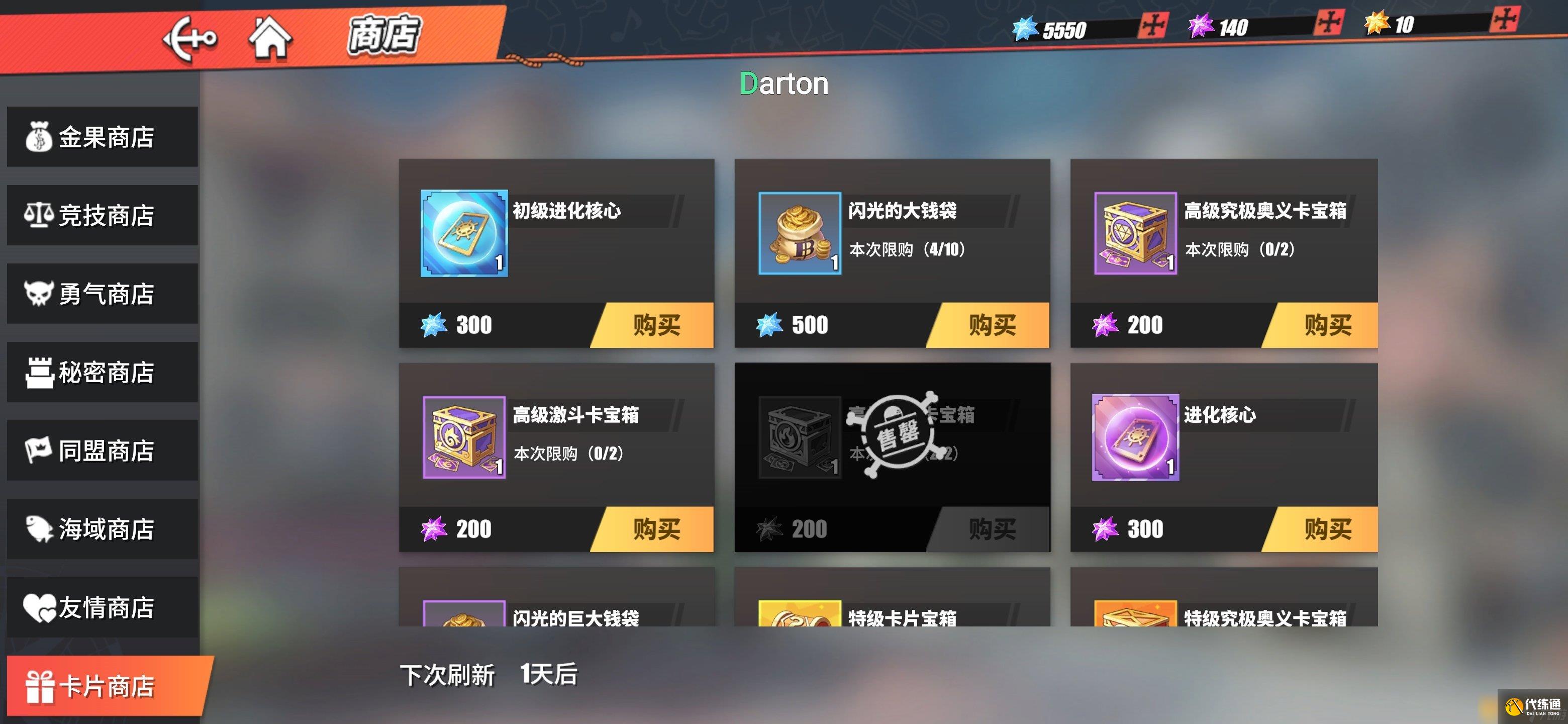 靠前的三个建议购买,在解锁激斗卡槽的前提下,建议兑换高级激斗宝箱,剩下的可以根据自己培养的角色激斗卡进行兑换;