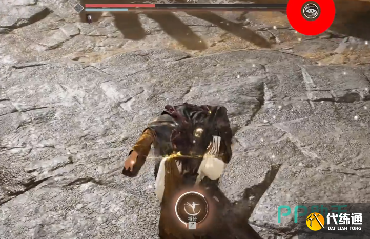 等将第一阶段给击败,到了第二阶段才是获取奇术的关键阶段,这个时候他会释放一种旋踢攻击,千万不要躲避我们需要再这个时候格挡,或者直接对拼,这时大家可以在右上角看到一个带眼睛的圆圈。