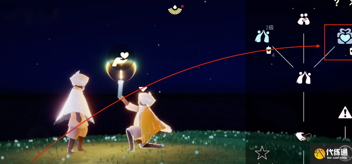 2.在 [好友星盘1] 上随机点击一位已经解锁击掌的好友,找到第三个图标花费3根普通蜡烛完成送礼即可