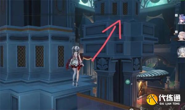 4、从柱子上跳跃至前面的台子,继续使用 跳跃 + 闪避 + 空中滑翔,跳跃至下一个位置。