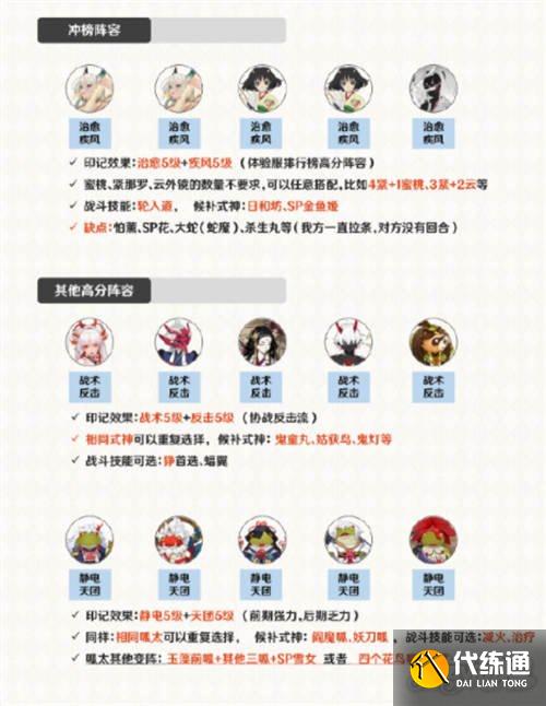 前期速刷印记:天团、静电、凶猛等, 后期冲榜推荐:治愈+疾风、战术
