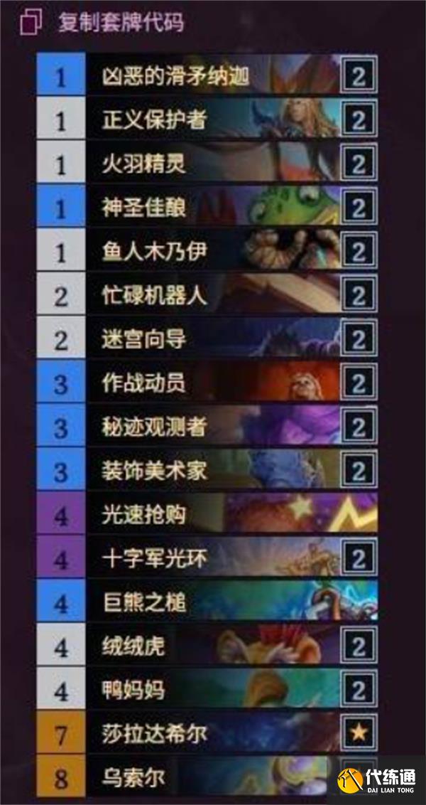 起手与构筑都压缩到了极致曲线,1费铺随从多达8张,2费补节奏或过牌,3费则开始强化场面。后期则依赖大哥与神圣佳酿回场,增加爆发与恢复容错率。