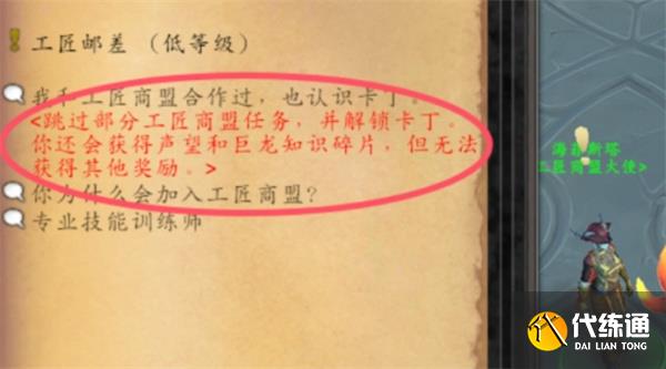 此处将提供选项“跳过部分工匠商盟任务链”,务必选择该项,以加快后续流程推进。