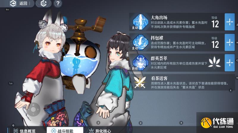 卯绒绒是筑术师定位的水系角色,拥有出色的攻击距离和范围伤害能力。大角出场能召唤分身造成水元素伤害,蓄水充盈效果满后可以扩大攻击范围。抖包袱技能在蓄水充盈状态下会自动释放,并附加专精效果提升伤害,但要注意避免与炎元素角色搭配使用。