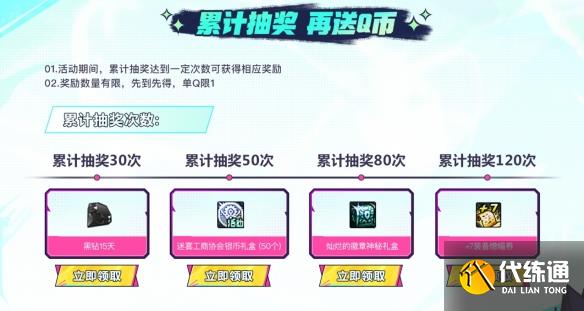 4、抽奖1次可得1积分,累积抽奖30/50/80/120次可获得阶段礼物;