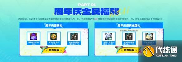 1、活动期间在该页面可以领取周年礼包,充值6元还有额外的礼包可领取;