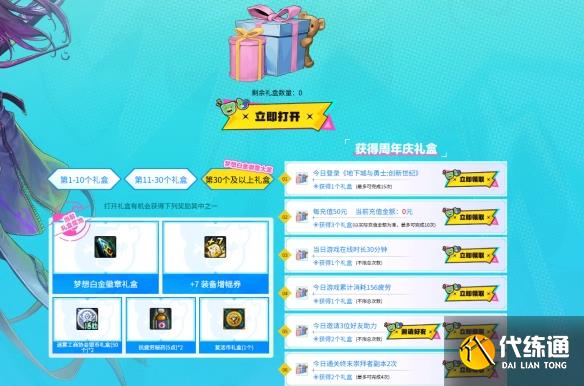 3、完成界面的指定任务可获得【周年庆狂欢礼盒】,打开礼盒能获取不同的奖励;