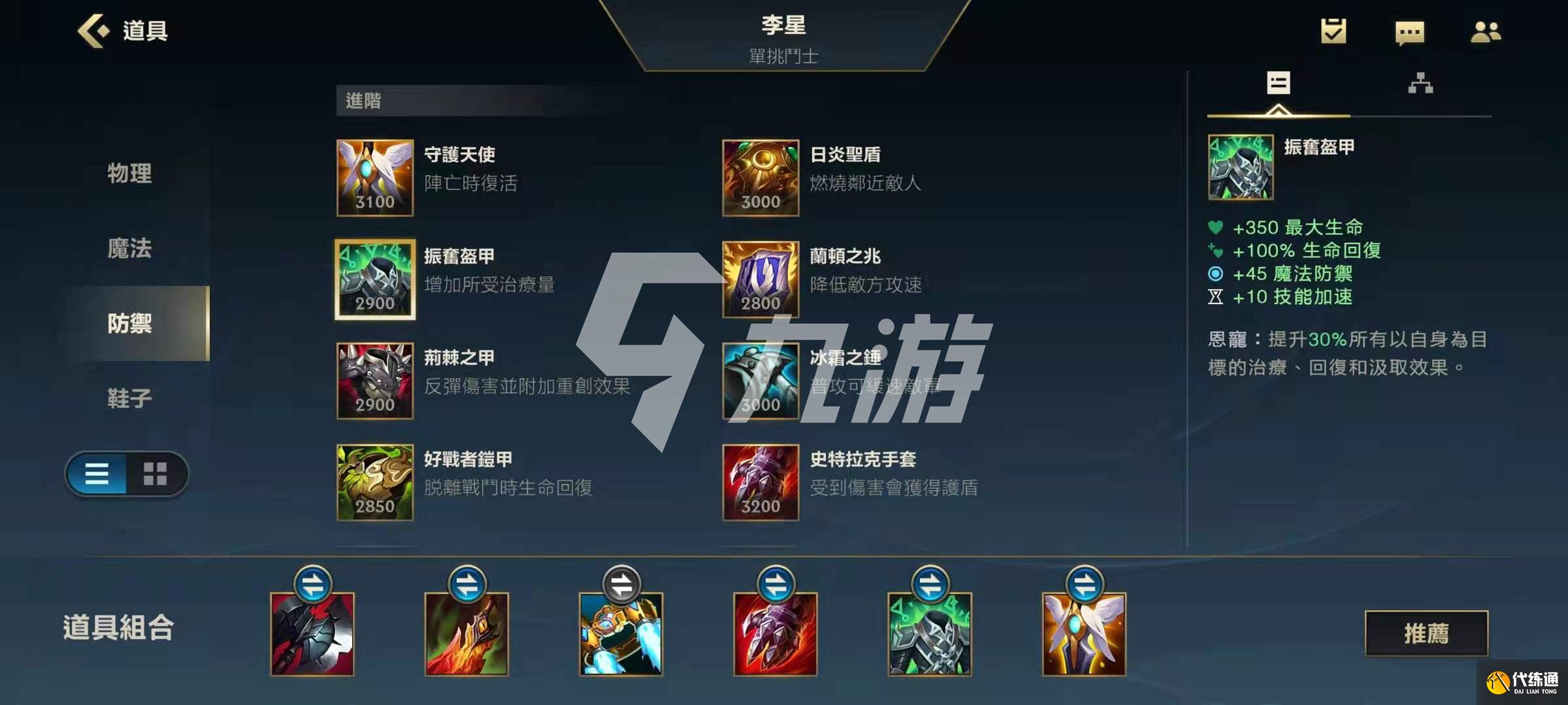 其余装备直接转肉,第三件装备看对阵的英雄,如果对手阵营AD居多则出死亡之舞,AP居多则出振奋铠甲。这两件装备除了提供抗性外有一个共性就是技能急速。装备附魔的话最好选择石像鬼,石像鬼依然可以为瞎子提供护盾。